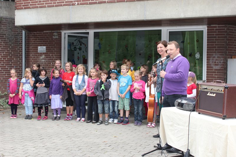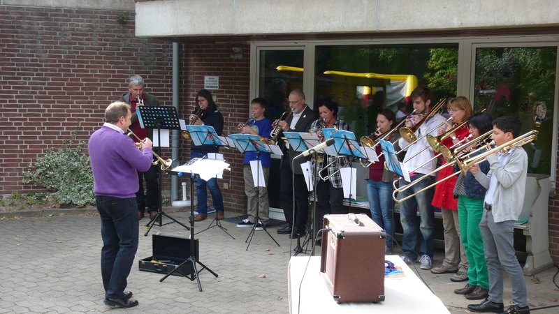 "Haste Töne?" war der Familiengottesdienst zu Beginn überschrieben. Alle BesucherInnen erhielten einen Anstecker mit einer Note und wurden eingeladen, ihre Töne und Melodien in den Klang der Gemeinschaft einzubringen. Passend zum Motto gab es ein umfangreiches Musikprogramm. Es begann der Chor der Grundschule Hondelage. Außerdem musizierten der Instrumentalkreis, die beiden Posaunenchorgruppen und das Männer-Vokalensmble "Grandma's Boys". Alle Mitwirkenden hatten immer ein zahlreiches Publikum. Die Kinder freuten sich an den Spielmöglichkeiten des Außengeländes, genossen die Bewegung in der Hüpfburg und auf dem Trampolin und manche bastelten Instrumente und probierten Klangspiele aus, die Mitarbeiter/innen der Kirchengemeinde und die Kita "Kind in Hondelage" (Elterninitiative) angeboten hatten. Insgesamt ein schönes Gemeindefest, in dem viel Musik drin war!
