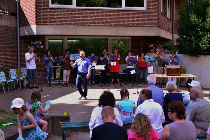 Nach dem bunten, musikalischen und lebhaften Familiengottesdienst zum Auftakt tummelten sich die Menschen im Gemeindehaus bei Torte und Kaffee, auf dem Parkplatz bei Bratwurst, Salat und am Getränkewagen. Der Chor der Grundschule, zwei Posaunenchorgruppen, der Instrumentalkreis und die Hondelager Gruppe „Orange Folk“ sorgten für musikalische Unterhaltung. Die Kinder und Familien nutzten unsere Spielplatzangebote und die Hüpfburg ausgiebig und im Jugendzentrum erfreute die Kinder-Disco ihre zahlreichen jungen Besucher/innen. Jens Paret