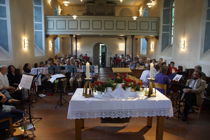 Durch das Motto der Festmusik entstand ein sehr abwechslungsreiches Programm, das vom "Allegro" des Instrumentalkreises über den Satz "An Irish blessing" des Kirchenchores bis hin zum"Rock around the clock" des Posaunenchores kaum musikalische Wünsche offen ließ.