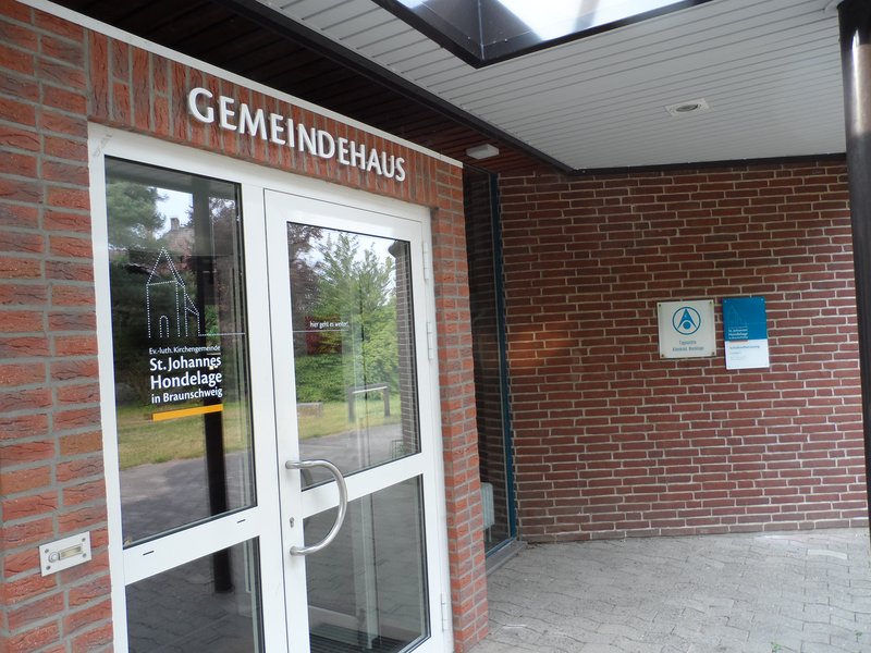 Sicher, man kann es ahnen und es gibt auch nicht so viele Häuser in dieser kleinen Straße, aber es ist doch für nicht so Ortskundige viel schöner und einladender, wenn es auch direkt zu erkennen ist. Nachdem wir nun schon seit einigen Wochen an unserem Schaukasten eine erste Visitenkarte mit dem Hinweis auf die Parkmöglichkeiten angebracht haben, ist nun das Gemeindehaus auch schriftlich über dem Eingang als solches zu erkennen. Von allen Seiten findet man nun den Eingang, an dessen Tür auch eine Einladung zum Öffnen und Eintreten geschrieben ist.